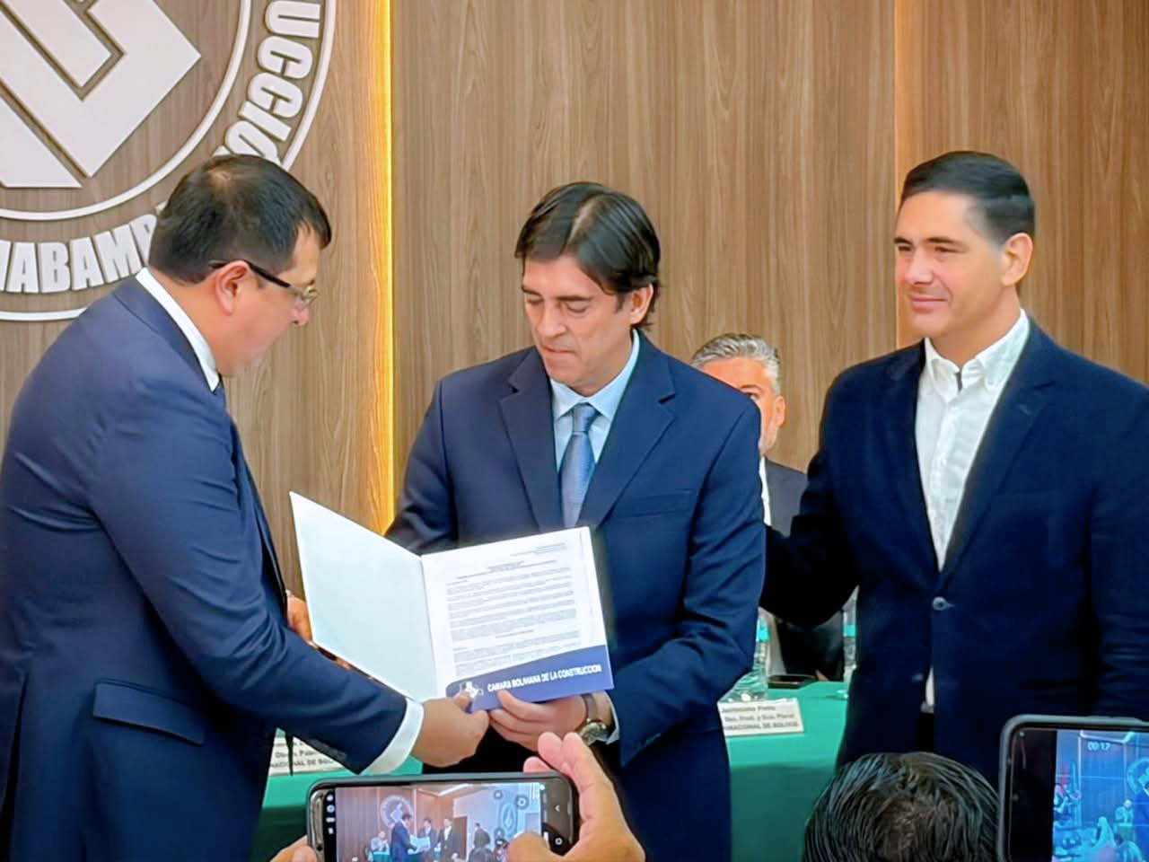 Los Ministros de Obras Públicas y de Desarrollo Productivo y Economía Plural, Mauricio Zamora Liebers y Óscar Mario Justiniano Pinto, respectivamente, entregaron formalmente a los representantes de las cámaras de la construcción del país, el Decreto Supremo N. 5597 que autoriza el reajuste de precios de materiales de construcción, maquinaria y equipos, en los contratos de obras y contratos llave en mano, suscritos por entidades públicas.