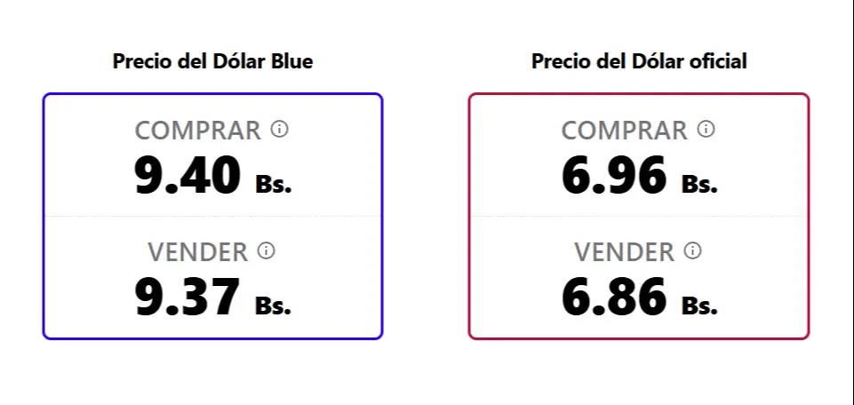 Por su parte, bolivianblue.net reporta una cotización de Bs 9,40 para la compra y Bs 9,37 para la venta, también con una subida frente al cierre del miércoles.