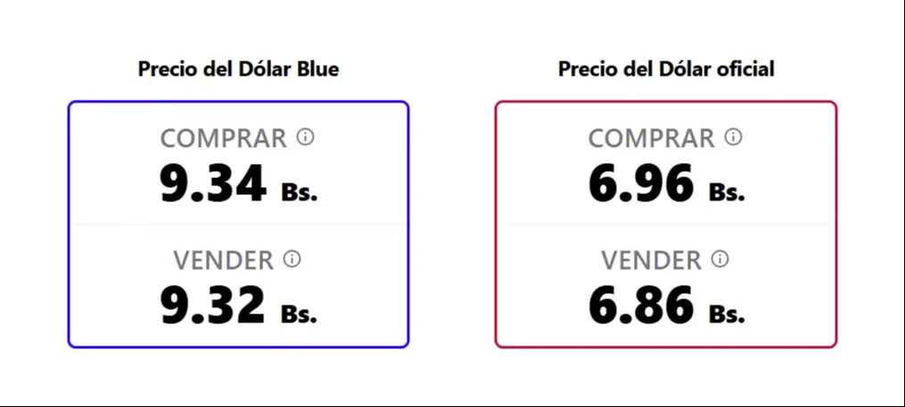 El martes, la misma plataforma reportaba valores de Bs 9,32 para la compra y Bs 9,31 para la venta, lo que evidencia un incremento en la cotización de compra y estabilidad en la de venta.