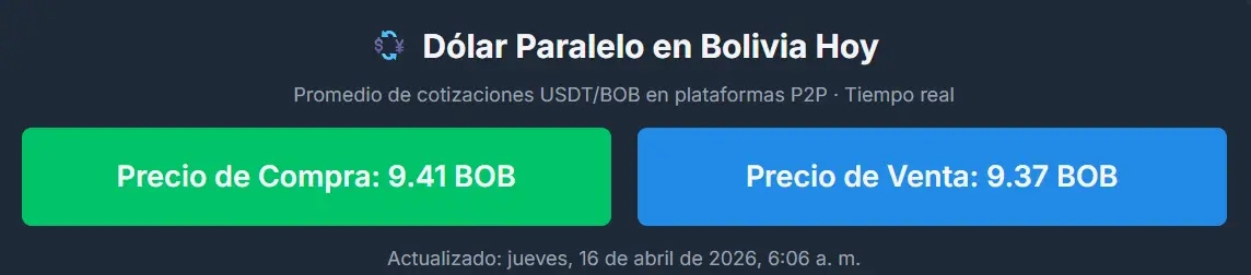 El dólar en el mercado paralelo boliviano registró este jueves 16 de abril una nueva variación, según plataformas que monitorean la cotización de la divisa fuera del sistema financiero oficial.